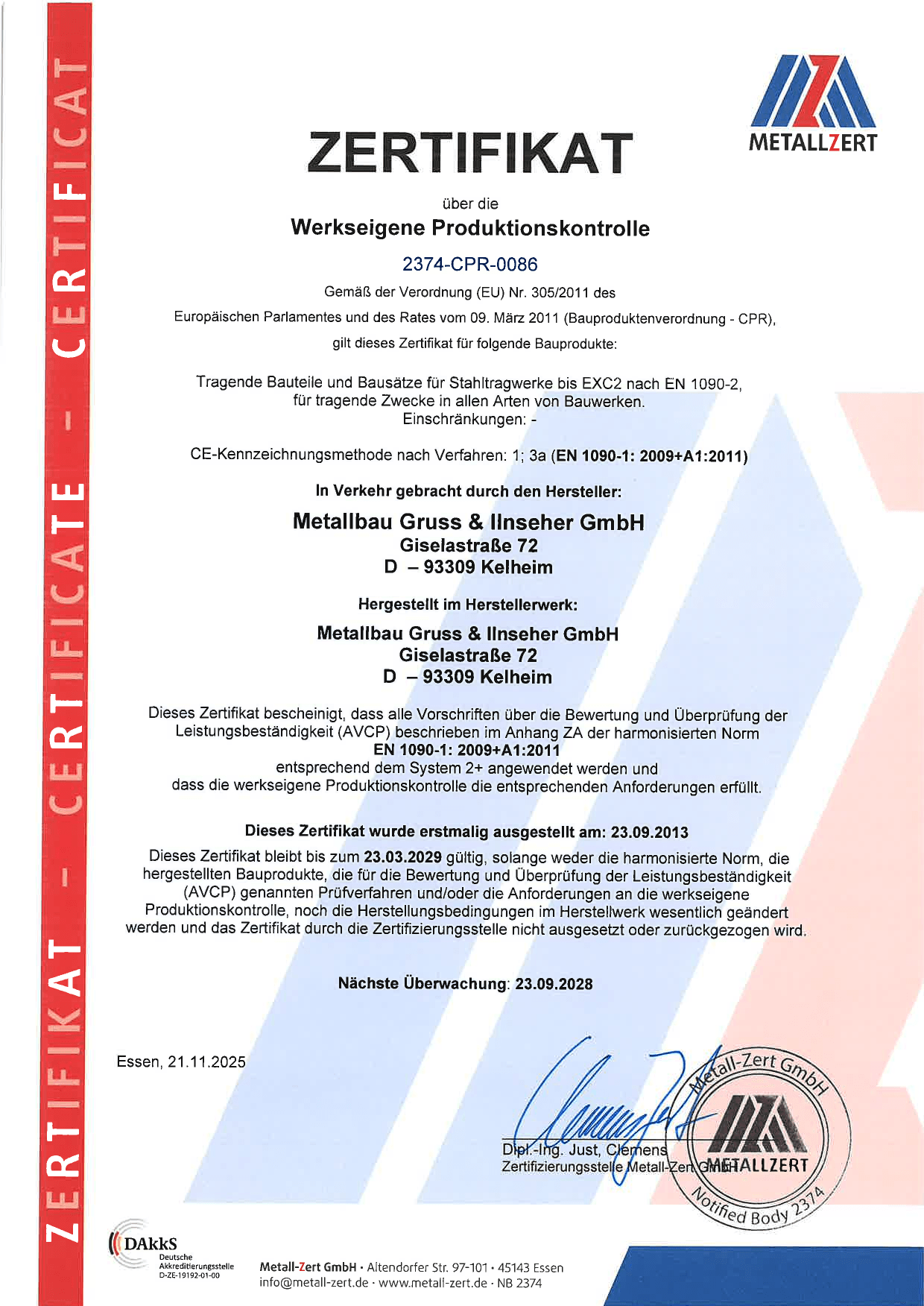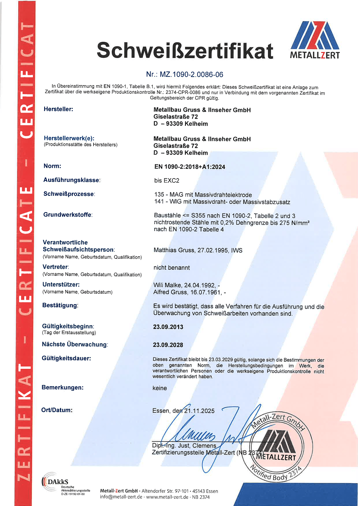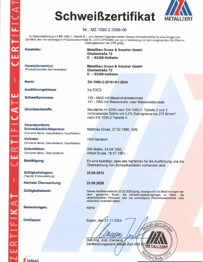 nach DIN 1090-2 Ausführungsklasse EXC 2
